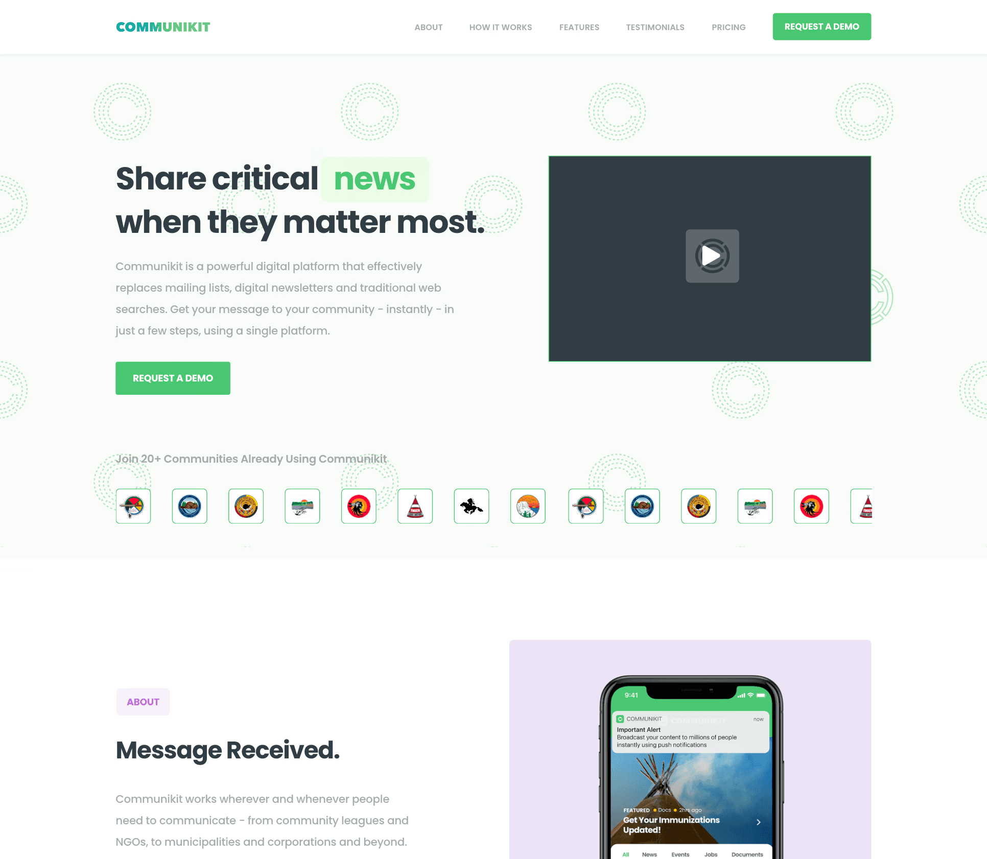 The Communikit App replaces social media, digital newsletters and community flyers as an official means of communication for Indigenous organizations. After a successful MVP release, it required design and usability updates to support its fast growing B2B user base.